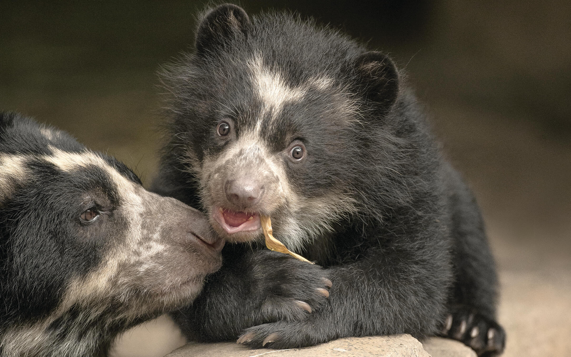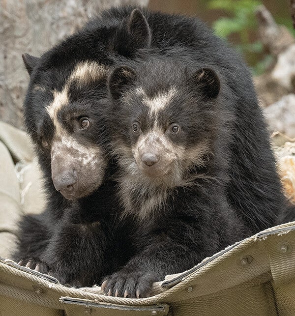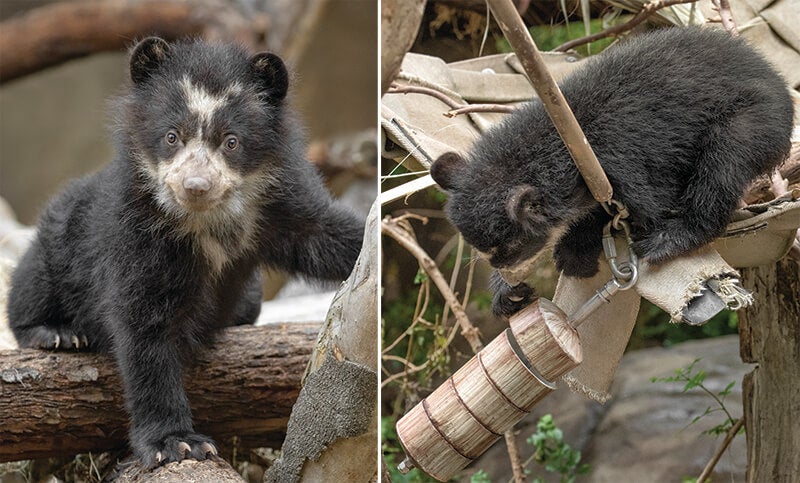 Each of Agapito’s new experiences isn’t just a milestone for him—it might also provide insight into his species’ existence in South America. As he expands his world, Agapito’s growth is giving researchers who are dedicated to studying Andean bears some much-needed clues as to the day-to-day life of these bears in their native range. Andean bears (also called spectacled bears) are good at hiding in their habitat in South America, and little is known about mother and cub interaction. “The Andean forests where we work are so rugged and dense that it will be a long time before we can study the maternal behavior of wild bears there,” says Russ Van Horn, Ph.D., scientist, Population Sustainability, San Diego Zoo Global, and co-chair of the International Union for Conservation of Nature’s Andean Bear Expert Team. “Alba’s behavior and her cub’s development will suggest how closely, and for how long, wild bear mothers and cubs may be linked to birth dens, where we think they’re sensitive to disturbance by humans.” [caption id="attachment_137216" align="aligncenter" width="800"]