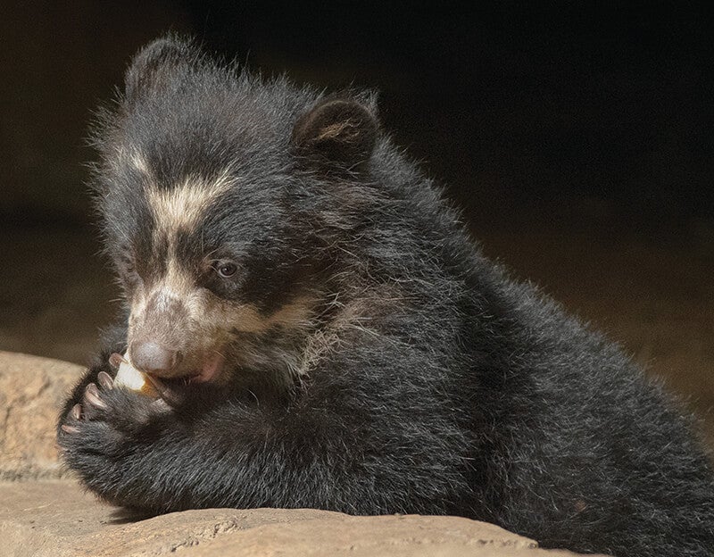 FURRY FRAMESEven at just a few months of age, an Andean bear’s characteristic fur “spectacles” are visible around the eyes.[/caption] Habitat loss, fragmentation, and degradation, as well as poaching, are among the threats Andean bears face. In southeast Peru, our researchers work primarily in the cloud forest and other humid montane forests, where most Andean bears are thought to live. Together with conservation partners, our Population Sustainability team is documenting Andean bear presence and characterizing critical aspects of bear ecology and behavior, such as foraging, trail use, and marking. [caption id="attachment_137217" align="aligncenter" width="800"]