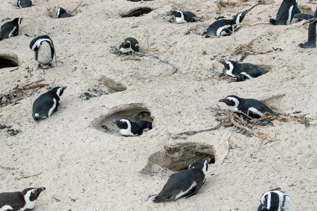 Penguins literally fly underwater. Continuously diving for food requires lots of energy, and penguins need nearby sources of fatty fish to thrive. And because they live in large colonies, spending their days at sea feeding and their nights on shore, their food source not only has to be close, but also plentiful. At the colony, African penguins nest in burrows excavated in layers of guano (nitrogen-rich bird poop) or sandy soil, and on average raise one or more chicks per year. Working with partners, San Diego Zoo Wildlife Alliance supports penguin monitoring and conservation in South Africa, and the McKinney Penguin Habitat at the San Diego Zoo helps build awareness for these endangered seabirds.