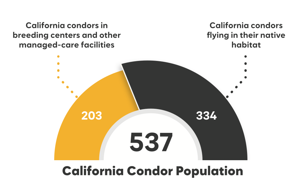 California condors are Extinct in the Wild. There are 27 at the Safari Park and the Los Angeles Zoo: 10 rescued from the native habitat, and 17 that were reared in managed care.