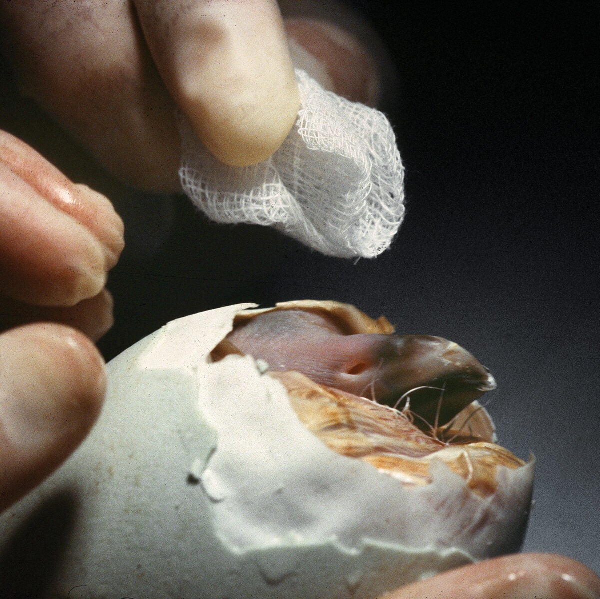 Eggs rescued from condor nests are incubated and hatched at the San Diego Zoo Safari Park. Over the next two years, SDZWA incubates, hatches, and raises a total of 12 condors.