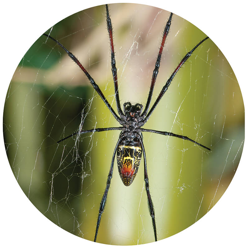 You might notice something missing from the golden orb weaver habitat: a barrier separating you and the spiders! But arachnophobes, have no fear. Golden orb weavers live life vertically, staying put in their strong, stretchy webs as long as they have everything they need. San Diego Zoo wildlife care specialists make sure that the orb weavers have insects to eat, water droplets to drink, and plenty of branches to weave their three-foot-wide webs, creating a safe and comfortable spider home. This means there’s no need for the golden orb weavers to wander—and no need for you to run away.