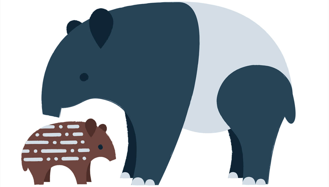 Pefect for blending with the dappled sunlight in a forest, a tapir calf’s striped and dotted markings fade as it grows, and are gone by six months of age.[/caption]
