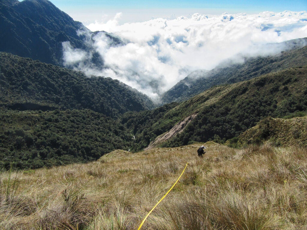 From Tres Cruces, with a light pack and no misadventures, you could walk downhill from the grassland and drop across dwarf alpine forest, cloud forest, upper and lower montane forests, to the Amazon rainforest in less than two days. The rainforest is not far away, but there are no Andean bears there. Through a network of trail cameras, we’ve regularly observed bears to only walk about halfway down these slopes; you could walk down the entire elevational range of the bear in a single day.