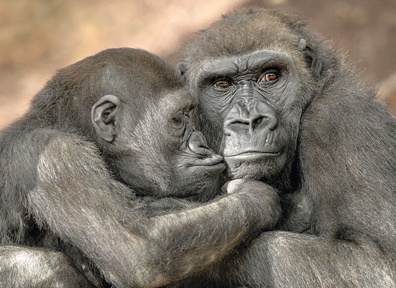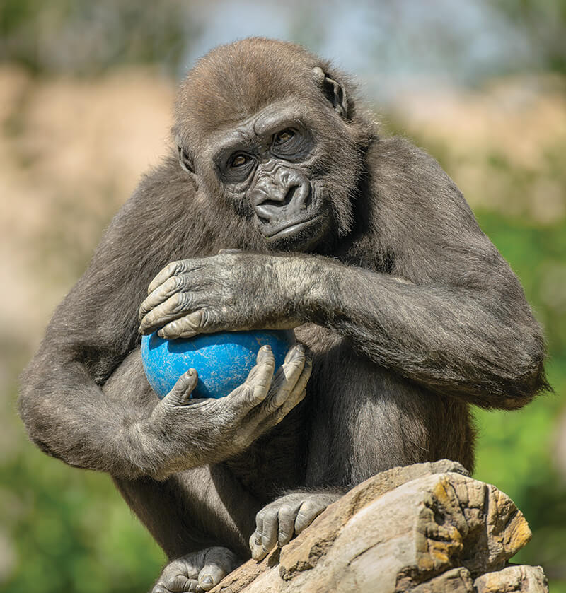 Leslie is a healthy, active three-year-old, and that means plenty of play throughout the day. Cataract surgery hasn’t slowed down this fun-loving girl one bit.[/caption] “The images were very reassuring,” says Dr. Heichel. Even better, Kokamo gradually accepted Dr. Heichel’s attention to Leslie. On one visit, when Kokamo noticed Dr. Heichel, she picked up her daughter…and carried her over to him so he could have a look at her. “That visit was so special,” he says. Park visitors will attest that little Leslie is back to her usual self. “I am so grateful to have had this opportunity to work with the awesome team at the Safari Park and help a truly amazing animal,” says Dr. Heichel. While both Dr. Clancy and Dr. Heichel credit the wildlife care team with the success of the operation, the wildlife care specialists give the credit to the gorillas. Kelly says, “If it weren’t for Leslie and Kokamo being who they are, we wouldn’t have been able to do this.” [caption id="attachment_136070" align="aligncenter" width="800"]