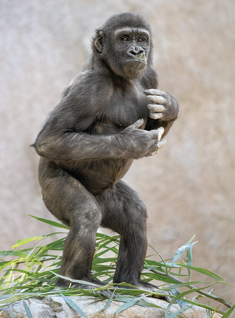 One evening last fall, as wildlife care specialist Breanne Murray brought the Safari Park gorilla troop inside for the night, she noticed something wasn’t quite right with the youngster of the troop, three-year-old Leslie. “Although she wasn’t displaying any behavioral symptoms, her left eye was cloudy—it had become completely opaque,” says Breanne. [caption id="attachment_136069" align="aligncenter" width="800"]