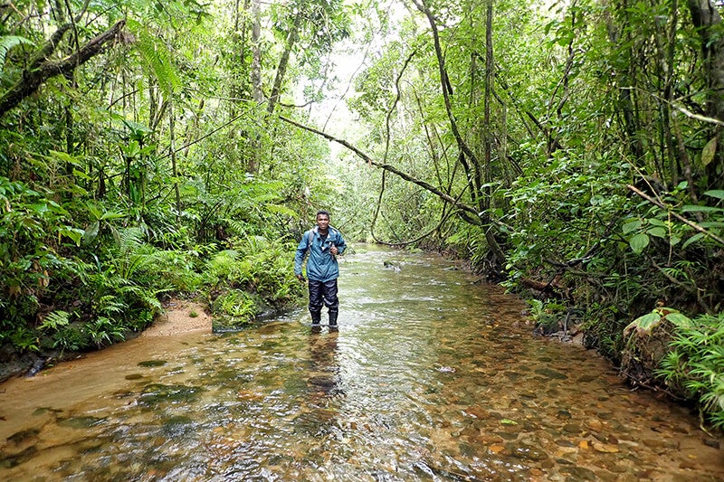 It’s remote, and it’s wet. Very, very wet. Even by field work standards, tracking tree-dwelling red ruffed lemurs in the far-flung deciduous tropical rain forests of northeastern Madagascar requires no small amount of courage, cooperation, fortitude, funding, organization, patience, intelligence, and a smattering of luck. But for primate expert Tim Eppley, Ph.D., postdoctoral associate, San Diego Zoo Global (SDZG), the work is urgent and necessary. “Red ruffed lemurs inhabit only a tiny pocket of their large island,” he said. “In the past 60 years, fragmentation has increased dramatically, with less than 10 percent of the forest remaining.” [caption id="attachment_135707" align="aligncenter" width="1600"]