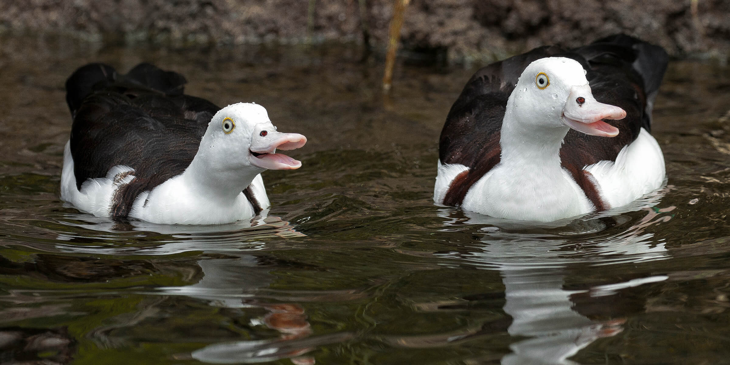 The old saying that on a rainy spring day “it’s fine weather…for ducks” is actually true. As another old adage puts it, water just “rolls off a duck’s back,” because they are well adapted for living in the water, near the water, and in the rain. But rainy or sunny, any spring day is ideal for getting to know the full-time resident duck species that live, swim, eat, and nest in the many habitats of the Zoo and Safari Park.