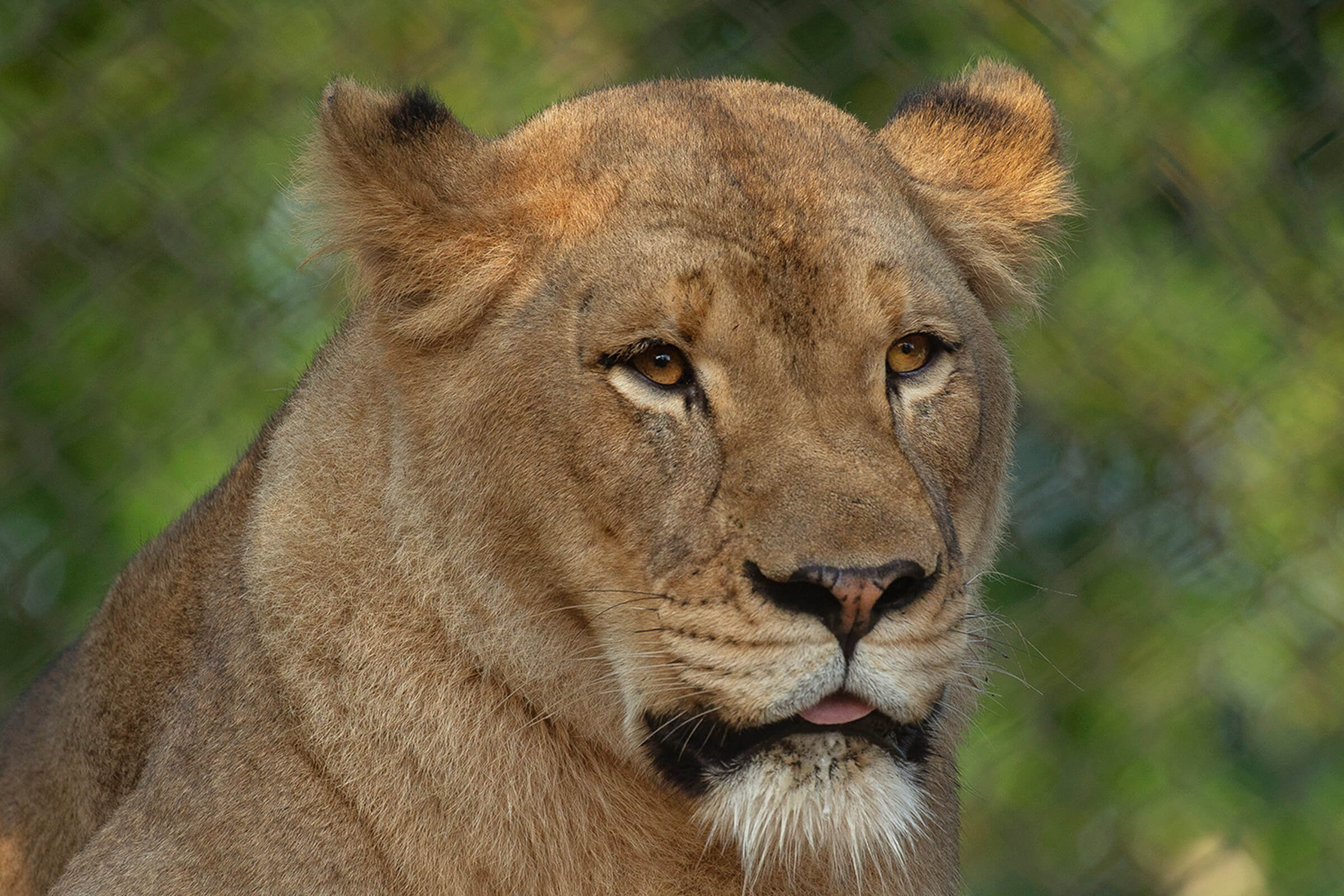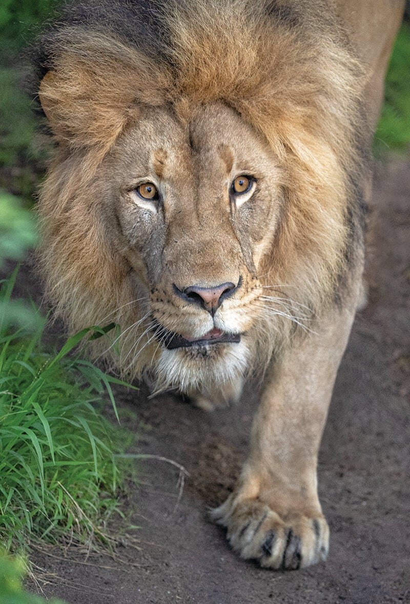Ernest and Miss Ellen are non-breeding lions. Both were neutered, because their genes are already well represented in the lion population, Kimberly said. “They are from a litter of 4—and those youngsters were the 15th, 16th, 17th, and 18th cubs in that family—so, they won’t be paired with mates for breeding.” Miss Ellen and Ernest’s sibling relationship has a different dynamic than a mated pair. “They like to be around each other, but because of that long sibling relationship, sometimes Miss Ellen feels comfortable pushing Ernest around a little—and that’s something that would never have happened with Etosha and M’bari,” Pete said. [caption id="attachment_134146" align="aligncenter" width="800"]