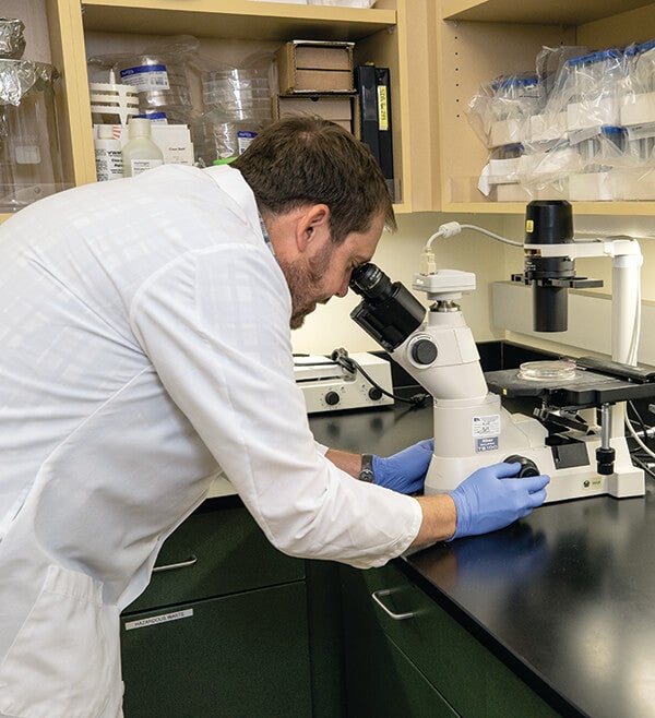 FOCUSING ON THE DETAILSChristopher Tubbs examines cells treated with EDCs to determine the possible effects.[/caption] Hormones are essential to reproduction, and males and females produce different types and levels of hormones. What specific hormones do in different species can also vary. For example, in many mammals, the hormone cortisol is released when an animal experiences stress—like a nearby predator—starting a process to generate enough energy to avoid the stressful situation. In fish, cortisol also controls the stress response; but in fish species that migrate between fresh and salt water, cortisol also helps them maintain proper salt and mineral balances in their bodies as they move between these environments. Same hormone, different purpose. [caption id="attachment_137190" align="aligncenter" width="2000"]