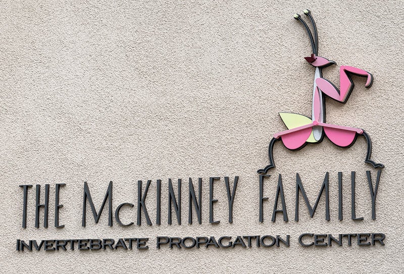 (Left)Special housing for leafcutter ant colonies inside the IPC. (Right) Giant Asian mantis Hierodula membranacea .[/caption] Invertebrates comprise 99 percent of all animal biodiversity and are well represented at the Zoo, thanks to the incredible capacity of the McKinney Family Invertebrate Propagation Center and upcoming Spineless Marvels experience. At a time when the conservation of invertebrates could not be more important, we are stepping up to meet the challenges of optimal invertebrate welfare and public engagement—one web at a time!