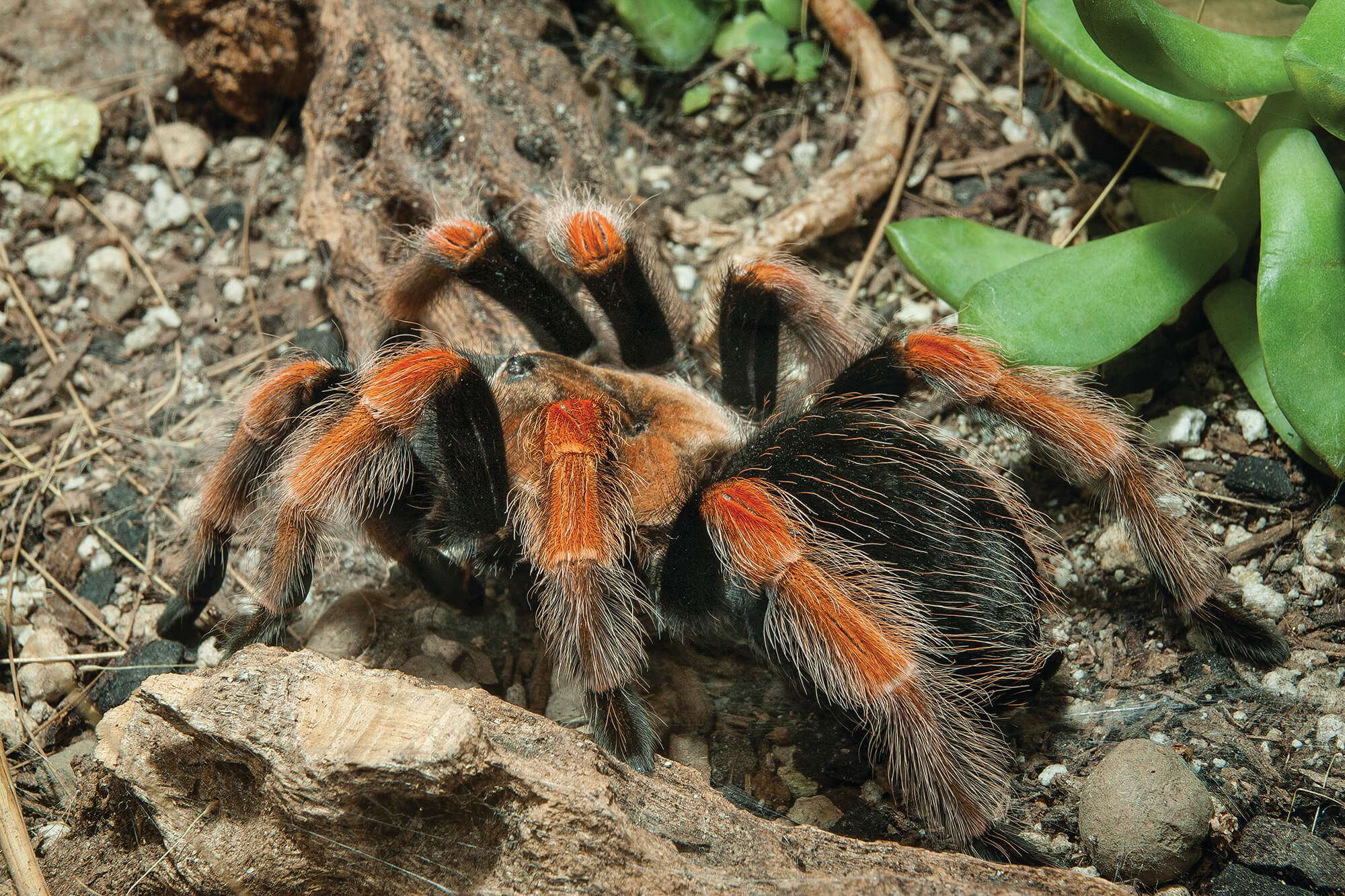 The flame-kneed tarantula is protected by international treaty from over-collection. This one was part of a large confiscation the Zoo provided sanctuary for in 2010.[/caption]