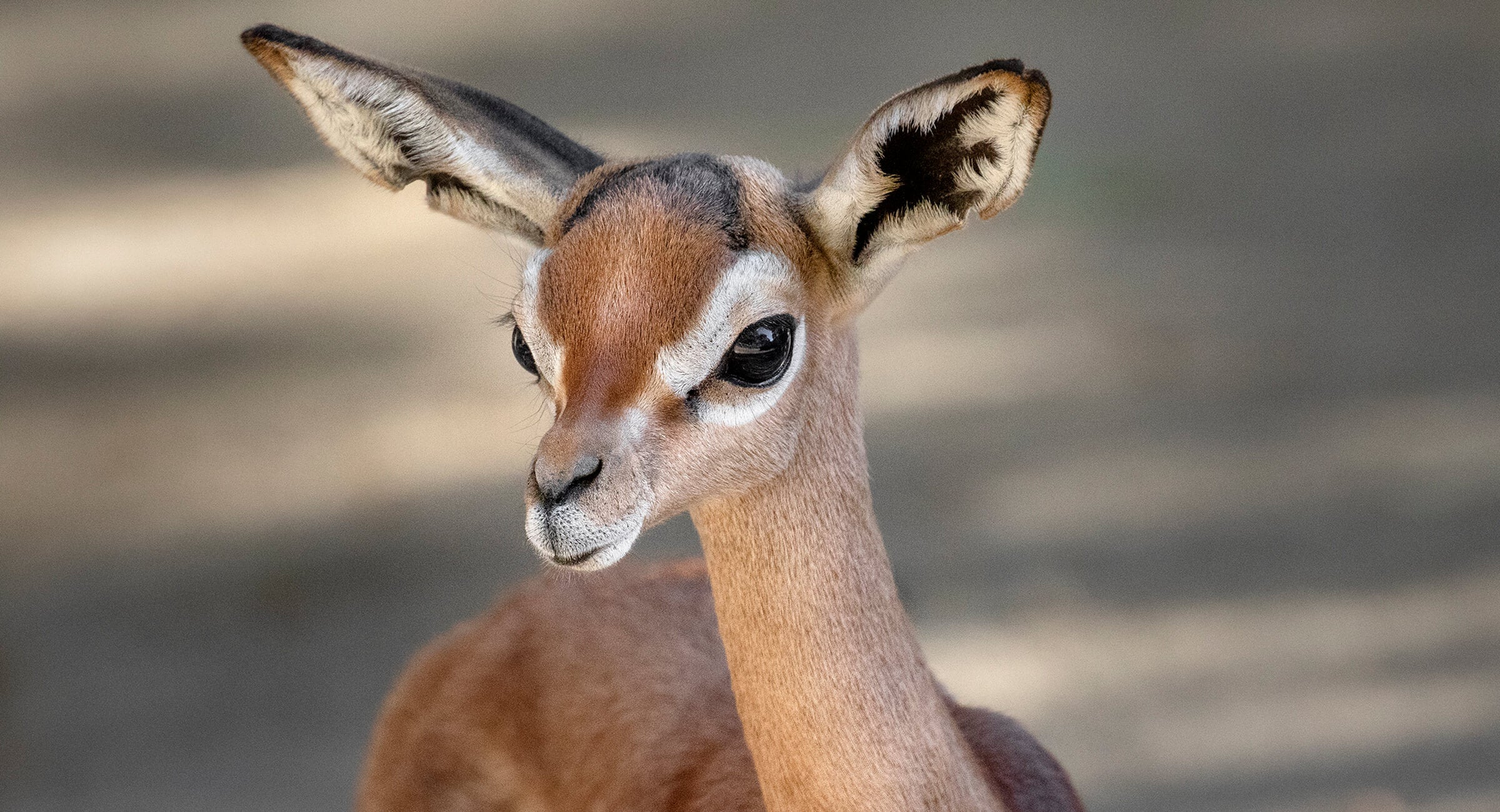 Following a birth in the savanna habitat at the Safari Park, a gerenuk was unable to care for her new fawn. Under the care of our specialized wildlife care and veterinary teams, the little antelope received the nutrition he needed to survive. He is doing well, as are the two little addra gazelles and a young steenbok receiving care at the same time.