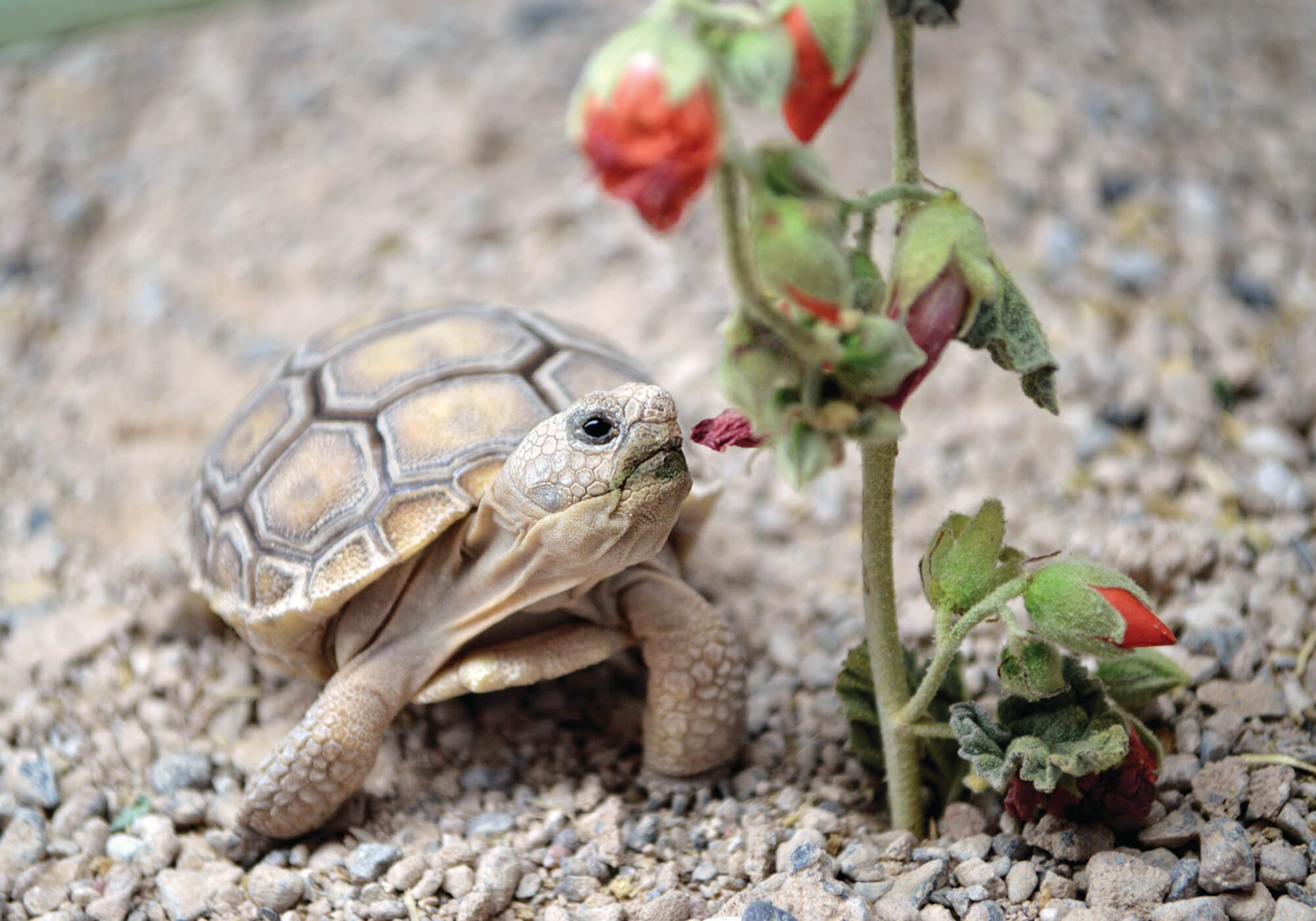 Consider this: You are only about an inch high and very slow moving. You do have a hard outer shell, which is helpful at keeping some predators from eating you. Still, many predators think of you as a crunchy-on-the-outside, juicy-on-the-inside treat. What’s more, you live in a harsh desert environment, and are fortunate if you get a few drinks of water each year. You may have guessed by now that you are a desert tortoise. Getting “inside a tortoise’s shell” to understand its perspective on the world is a large part of what we do to try to better conserve this species.