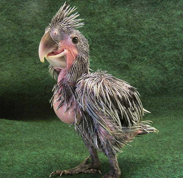 ELVIS’S BABY PICTUREHere’s our Elvis—can you see why the animal care specialists gave him that name? Hint: check those “sideburns.”[/caption] Hand-rearing the chick allowed the wildlife care specialists to observe and document all stages of the the little one’s development. As this particular chick’s feathers came in, it happened in an order that made it appear like he had sideburns, so the staff nicknamed him Elvis. Once he fledged, Elvis went to a “dating center” for palm cockatoos at the Sedgwick County Zoo in Kansas. This species is known to be particular when it comes to choosing and bonding with a mate. At the Kansas facility, the palm cockatoos are kept in groups to allow for optimum socialization and lots of choices for mate selection. Elvis did, indeed, find a female that suited his fancy—and vice versa—and the two returned to San Diego. They have their own territory in the koala area at the Zoo, where visitors delight in the pair’s activities and marvel at their beauty.