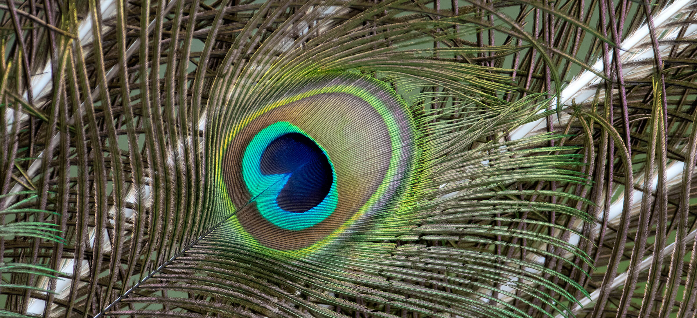 The peacock’s long coverts—the feathers covering its tail—are studded with colorful, eye-shaped spots called ocelli. When those coverts are raised in a courtship or dominance display, the “eyes” are everywhere, making the peacock all but impossible to ignore.[/caption]
