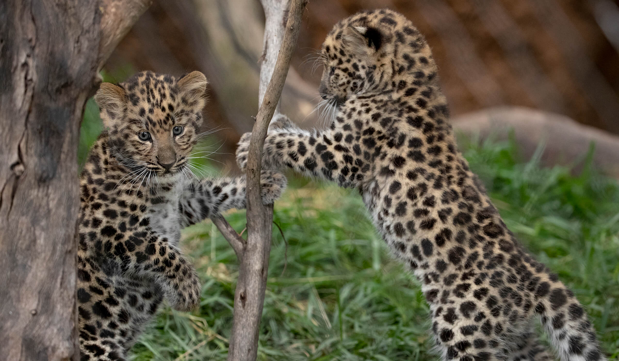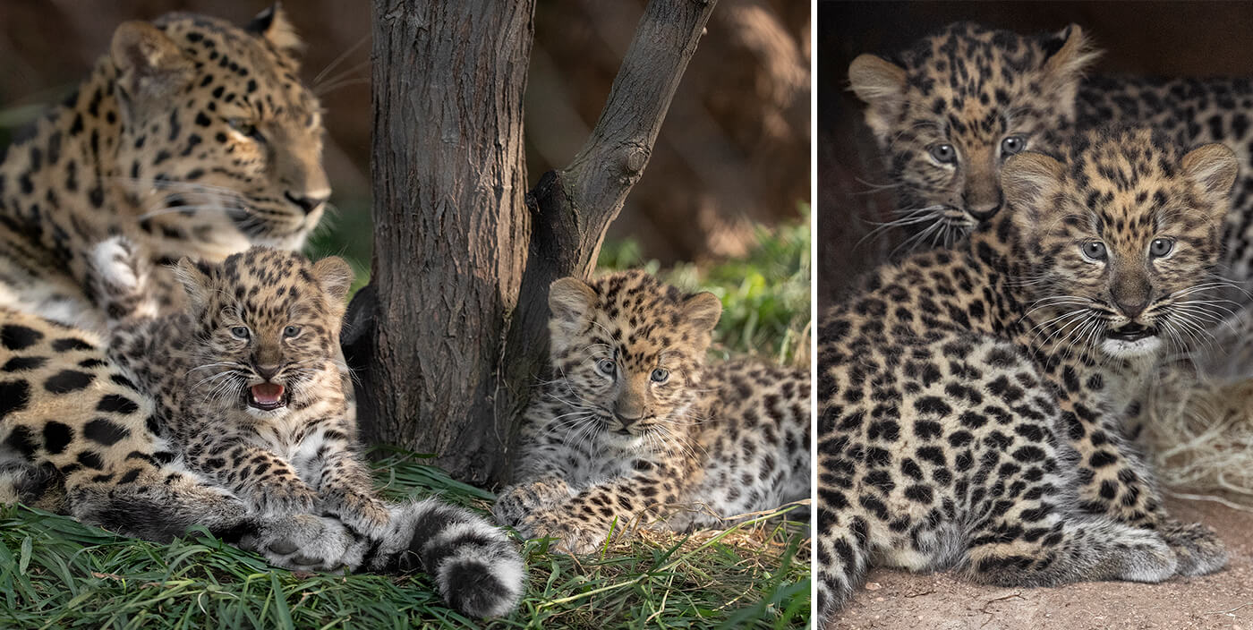 The month of April brought the squeaks and mews of Amur leopard cubs to the San Diego Zoo. This was mom Satka’s second litter, and she was “rocking” it! “While she’s still very protective, her first-time mom jitters have subsided—but she’s still very much alert,” said Kelly Murphy, senior wildife care specialist. As the result of a poll of the Zoo's Facebook fans, the cubs have been named Lev (meaning "lion") and Tuman (meaning "fog"). Livestreaming cameras throughout the living spaces give staff a way to monitor Satka and her cubs. Kelly shared that as the cubs have become more mobile, Satka has had her paws full. “We review footage every day, and I catch myself laughing out loud watching her with the cubs,” she said. “She’ll be in one room, and a cub takes off toward the door. Satka gets up to bring it back. And as she’s dealing with that cub, the other cub has wandered halfway out.” Kelly noted that “Overall, Satka’s allowing them the opportunity to explore, but being protective—it’s a good balance.” [caption id="attachment_136786" align="aligncenter" width="1400"]