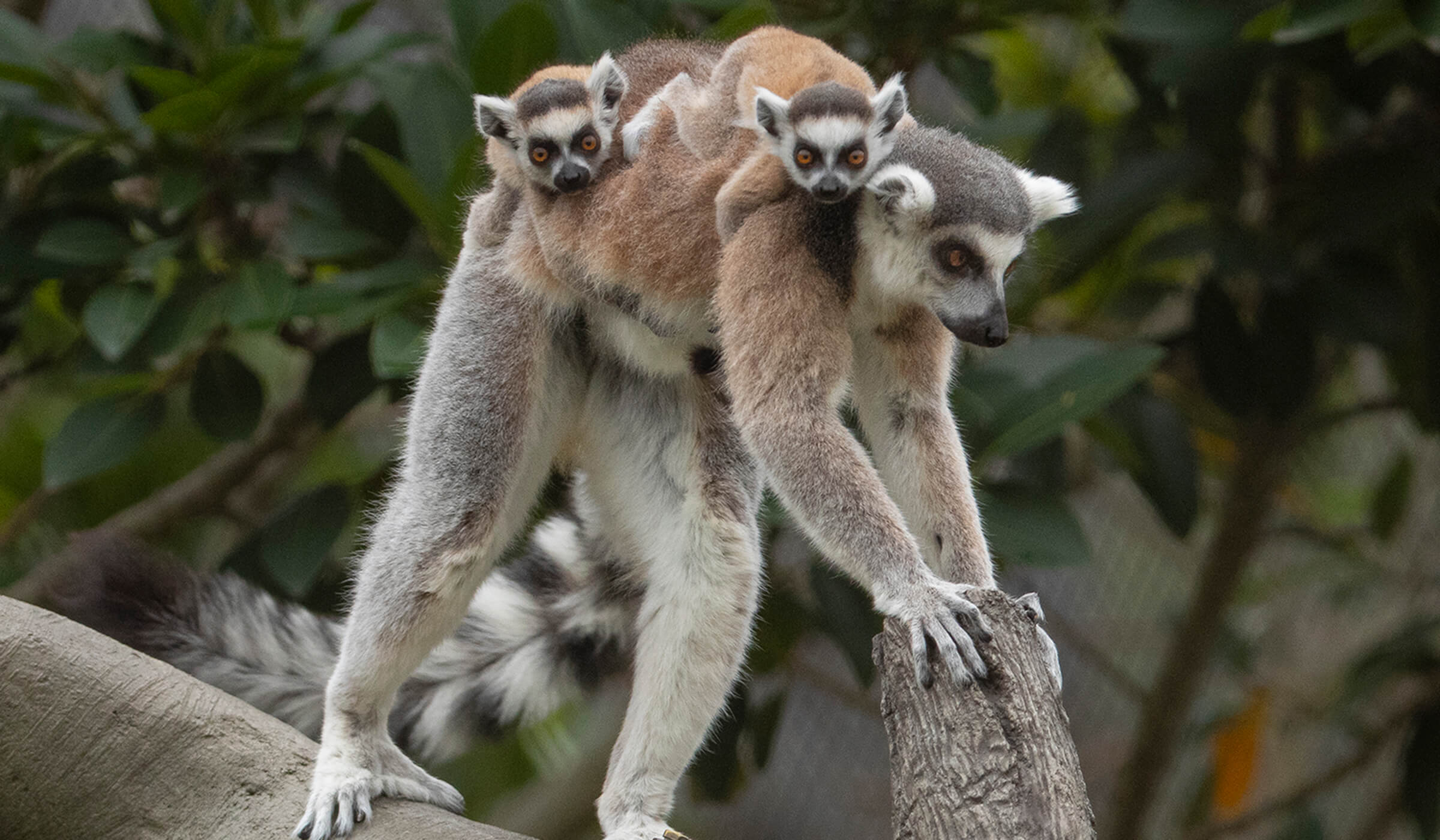 In a different part of Africa Rocks, two ring-tailed lemurs born in late February have continued to grow and thrive. “They know how to groom themselves and others,” said Yeleny Smith, a senior wildlife care specialist. “Each twin has an ‘auntie’ they go to for allogrooming. The little male, Tsiky, tends to allogroom with favorite female troop member, Taz. His sister, Meva, usually pairs up with Shabazz.” As with most youngsters, play is the young lemurs’ prime activity. They explore different trees in the habitat, and they are figuring out how to sunbathe by mimicking the adults. Whether it’s bouncing around the exhibit or eating leaves from the trees, these two have confidence in themselves to explore on their own—and that their troop will help them when needed. That’s the best way to grow! [caption id="attachment_136788" align="aligncenter" width="2400"]