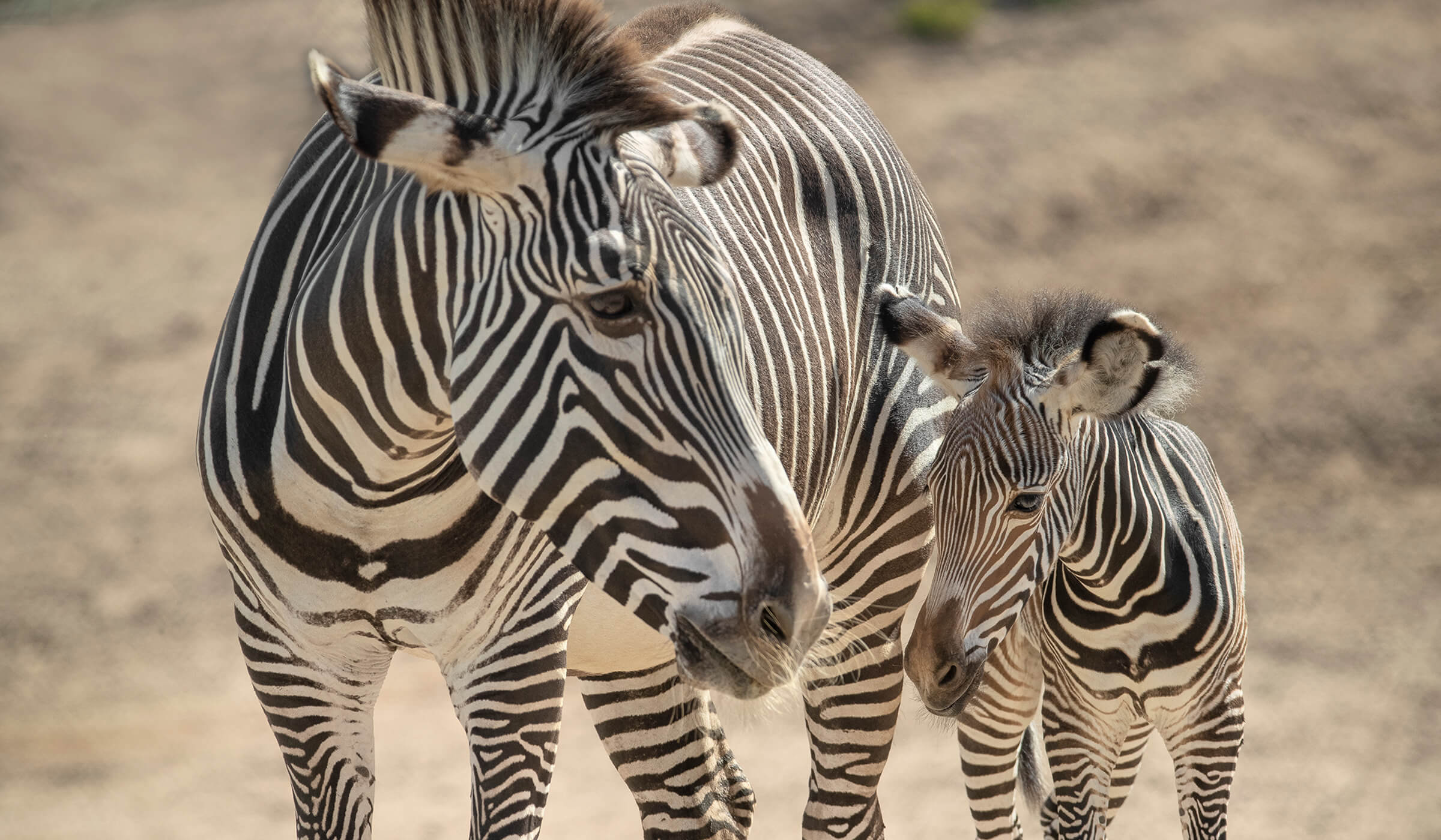 On May 22, the Safari Park gained some stripes—as in zebra stripes. Knowing that Leia, a six-year-old Grevy’s zebra, was expecting her first foal, the staff made her comfortable in a maternity area where she and the herd could see, hear, and smell one another, but she would have a quiet place to give birth. When staff arrived at sunup, Leia was grooming and nursing her foal. “Ideally, we do an up-close health assessment within the first 24 to 48 hours,” said Tommy Jordan, a wildlife care supervisor at the Safari Park. “But we also want the mare and foal to bond, so we try to wait.” When the team was able to first weigh her on June 5, Leia’s daughter weighed 128 pounds (Grevy’s zebra foals typically weigh between 80 to 120 pounds at birth). The as-yet-unnamed foal has joined the rest of the herd, and is quickly learning what being a zebra is all about—you might say she’s learning her lines.