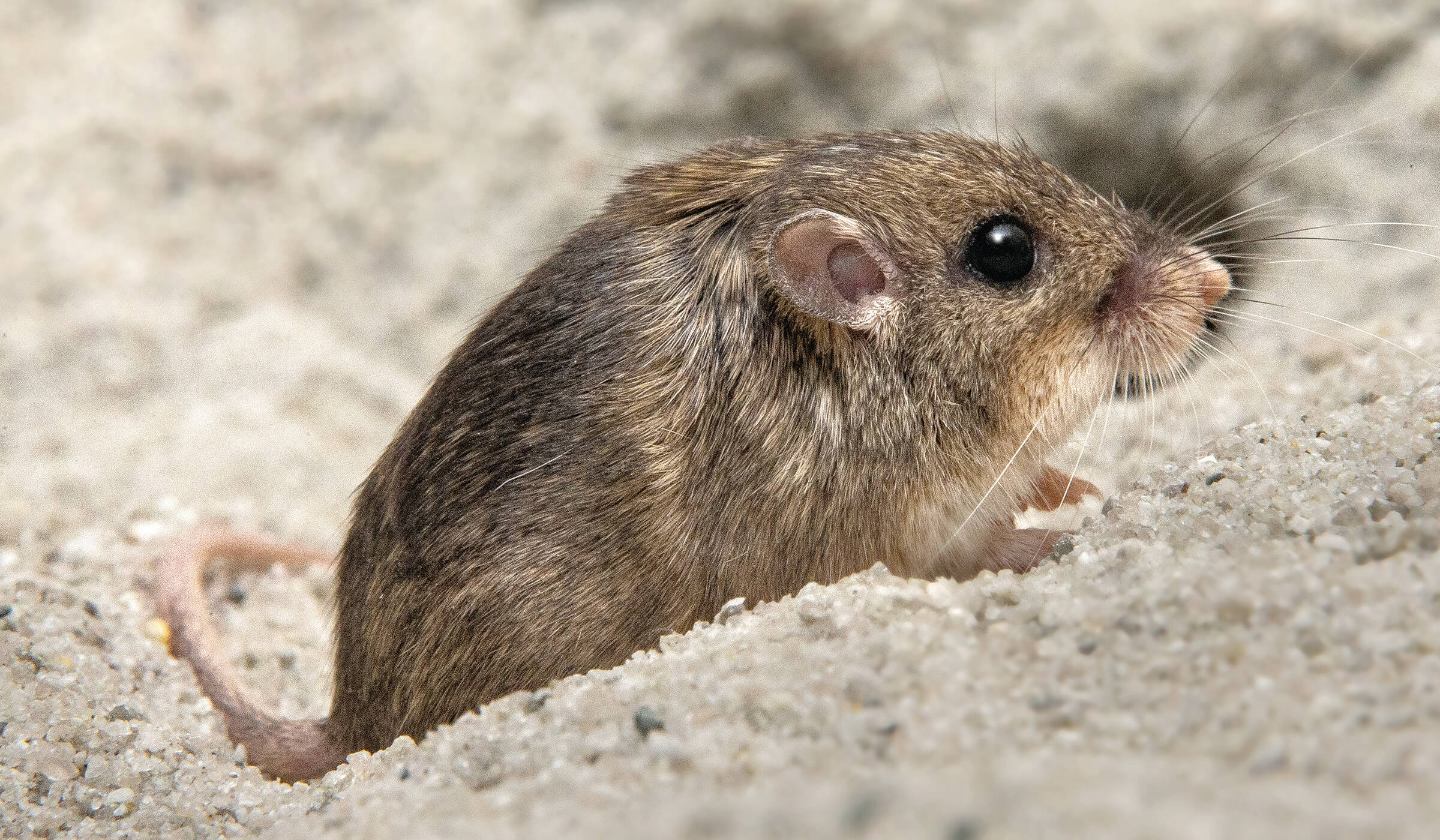 Weighing about the same as three pennies, the Pacific pocket mouse Perognathus longimembris pacificus is the smallest mouse species in North America. They get their name from pouches in their cheeks, used to carry food and nesting materials. In their native habitat, they disperse the seeds of native plants, and their excavation of underground burrows aerates the soil and encourages plant growth.