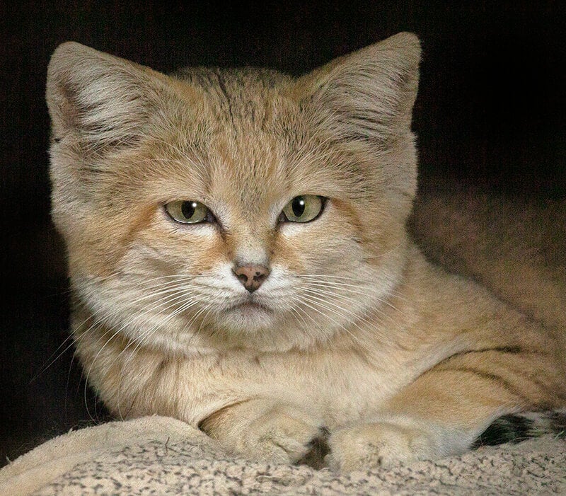 The undersides of Newman’s paws are furry, as in all sand cats. The hair provides traction on loose sand and insulates feet against the burning ground in the desert.[/caption]