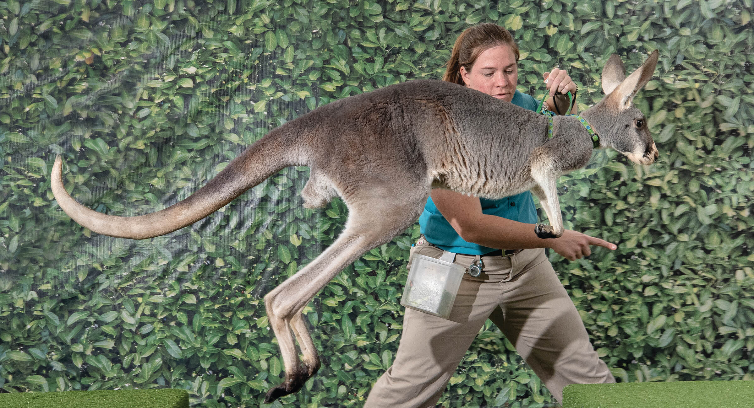 HOP-HOP-HOORAY!Addie, a red kangaroo, wows visitors at Wildlife Workshop as she responds to trainer Kara Walsh’s request to demonstrate her powerful hop.[/caption] With the opening of Walkabout Australia in 2018 and the arrival of the platypuses last year, Park guests have been eager to learn about Australian species. Wildlife Workshop ambassador animals include 19 Australian natives that you’ll find popping up with their trainers in Safari Base Camp, Nairobi Village, and Walkabout Australia. Another way to see them is by taking a Platypus and Friends or Roos and Mates Behind-the-Scenes Safari, where you may find yourself face to face with a kangaroo, a cockatoo, a sugar glider, a blue-tongued skink, and more—every tour is different. [caption id="attachment_135042" align="aligncenter" width="2000"]