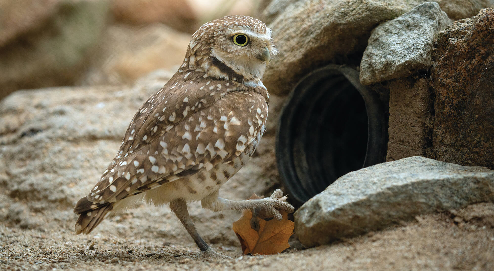 Burrowing owls don’t dig their own burrows; they depend on ground squirrels and other digging animals to create burrows. They often “timeshare” a burrow to incubate eggs and raise young during the owls’ breeding season. (Photo by Tammy Spratt, SDZWA)