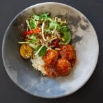 Add mirin & rice vinegar and cook for a further minute – set aside until meatballs are cooked