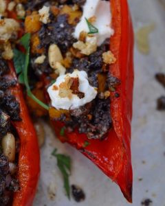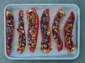 - I used pointed capsicums for presentation purposes but regular capsicums will work just fine. Cook for 5 – 10 minutes longer covered at 170c