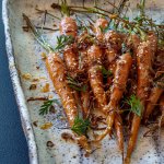 Remove from oven and add maple syrup and 1/2 of miso butter and toss gently. Place back in the oven for a further 8 - 10 minutes