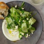 Place a heaped spoon of yoghurt on a plate, top with cucumber mix, sprinkle with feta and finish with lemon zest, cracked black pepper & pinch of salt