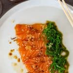 Place salmon on the plate and wakame to the side of the salmon