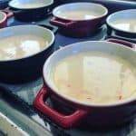 Place 1 tbsp of compote on bottom of ramekin and top with brulee mix.