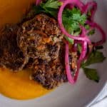 gently press the rissoles in the pan to keep their slight disc shape – don’t press too hard as you don’t want to squeeze out all the goodness! ALWAYS let your meat rest prior to serving